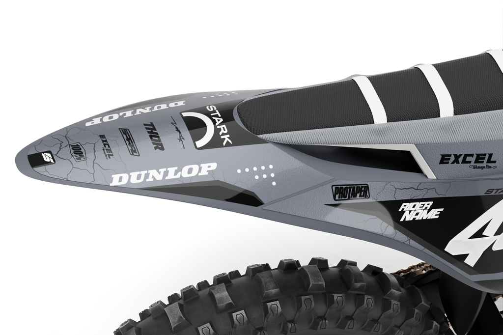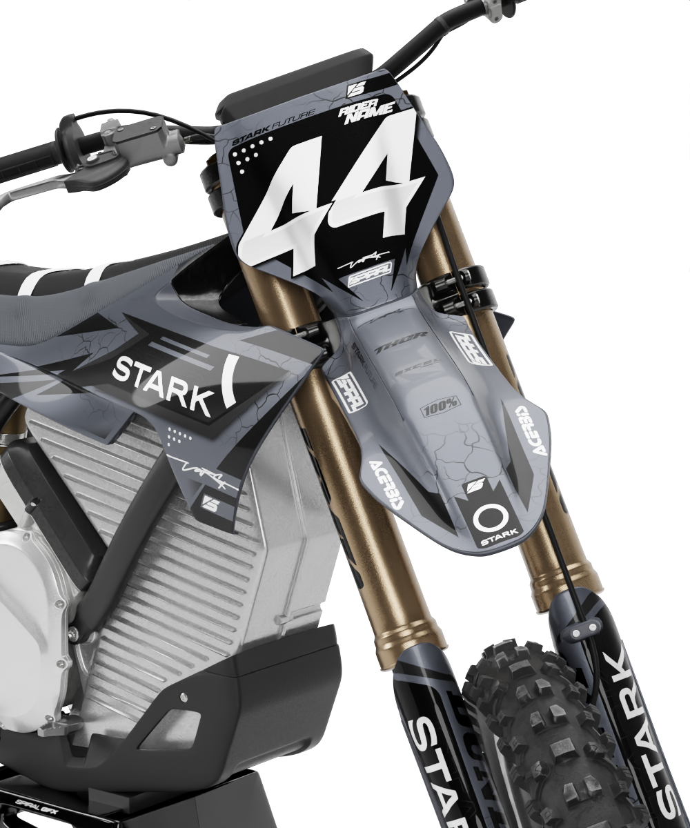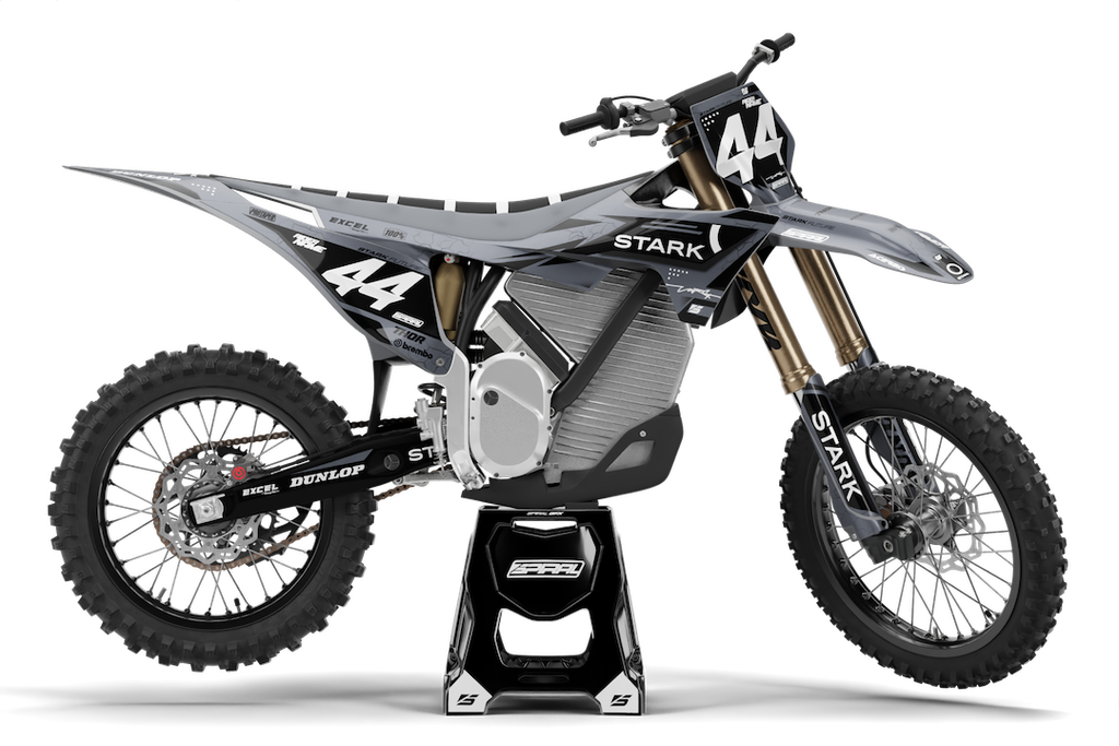 Kit graphique de motocross Stark Future // Stadium Grey fabriqué par SpiralGFX, sous licence KTM, Husqvarna et Gas Gas et imprimé sur les meilleurs matériaux avec un équipement d'impression de haute qualité.