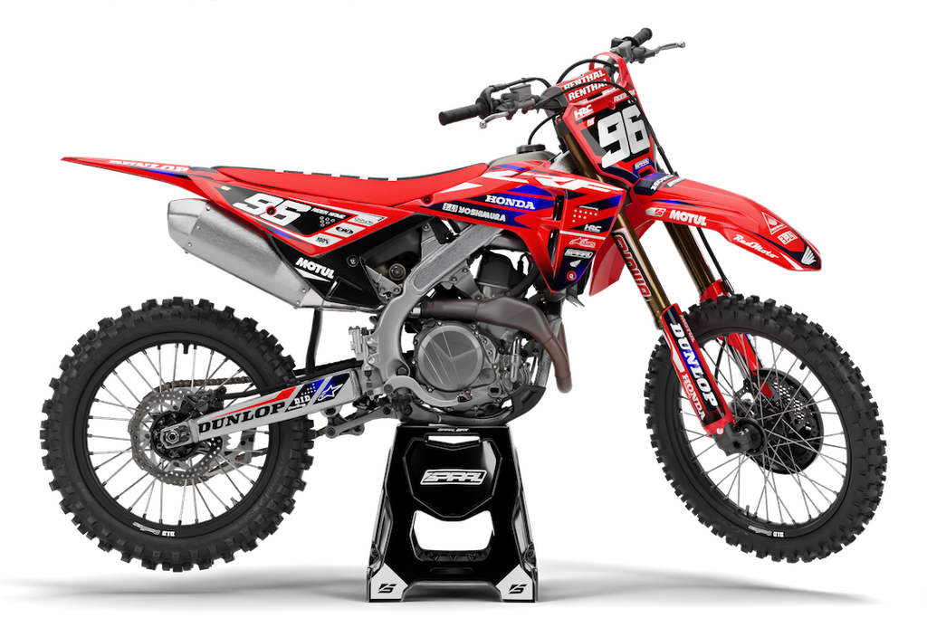Honda // Racer Red Blue Motocross Graphics Kit made by SpiralGFX, Licensed by KTM, Husqvarna & Gas Gas and printed on the very best materials with high quality print equipment.