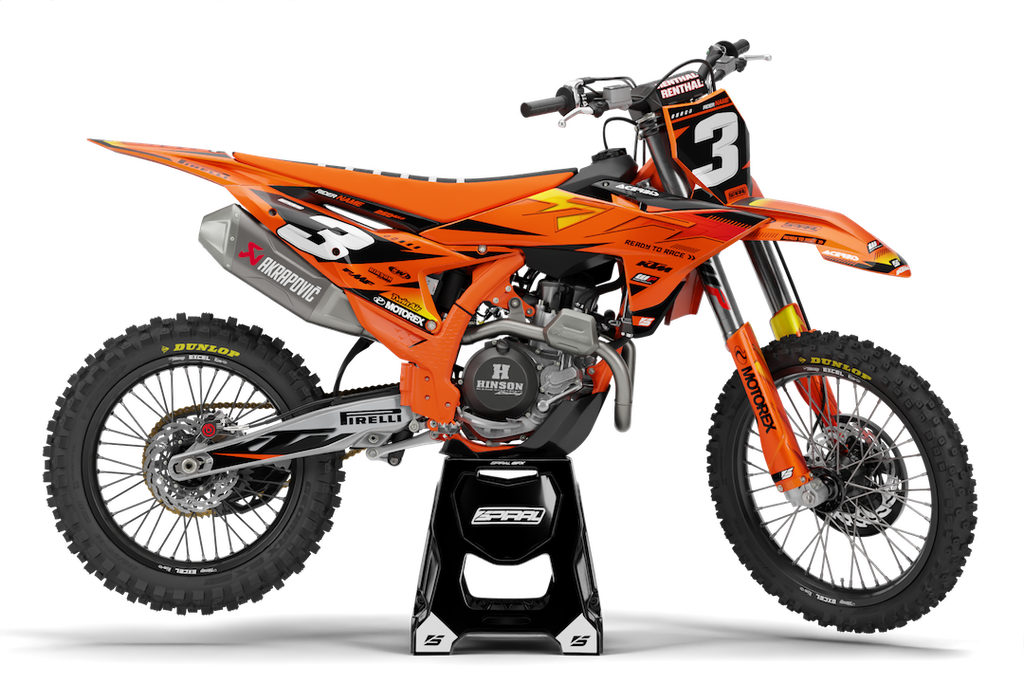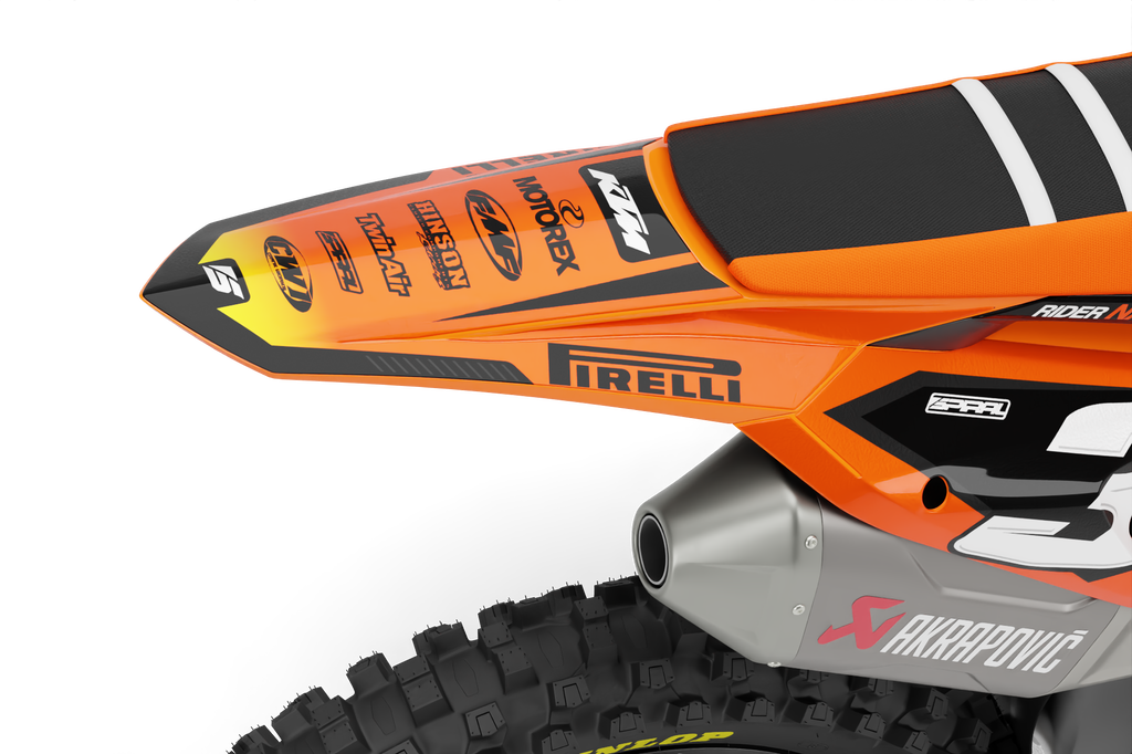 KTM // Sunrise Orange Motocross Graphics Kit made by SpiralGFX, Licensed by KTM, Husqvarna & Gas Gas and printed on the very best materials with high quality print equipment.