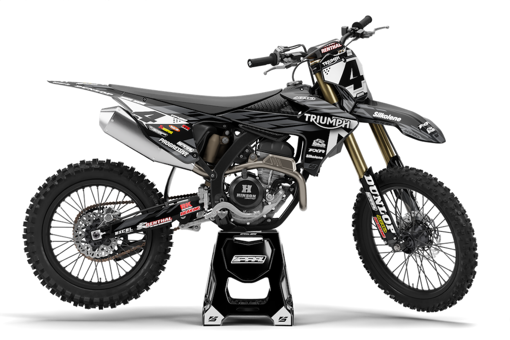 Triumph // Edge Black Motocross Graphics Kit made by SpiralGFX, Licensed by KTM, Husqvarna & Gas Gas and printed on the very best materials with high quality print equipment.